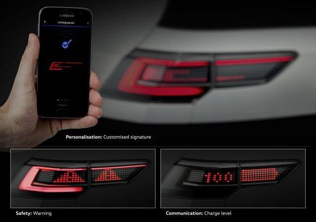 POTENZA DEI PIXEL Le nuove unità interattive includeranno fari HD formati da micro-pixel che offriranno fino a 30.000 punti luce. I fari HD micro-pixel proietteranno le informazioni direttamente sulla strada, contribuendo a migliorare la sicurezza. I nuovi sistemi prevedono fanali posteriori a che permetteranno di incorporare specifici messaggi di avvertimento. Ad esempio, durante situazioni di traffico intenso, i fanali posteriori consentiranno di avvisare le auto che seguono di una coda imminente. Ci sarà spazio anche per nuove funzioni di assistenza, come il sistema “Optical Park Assist”. Basato su micro-obiettivi incorporati nei fari posteriori, migliorerà la sicurezza durante le manovre. Più specificamente, proietterà la traiettori del veicolo in manovra sulla strada per avvisare i passanti del parcheggio in corso. La tecnologia renderà anche possibili nuovi sistemi di assistenza come “Optical Lane Assist”, che proietta corsie stavolta di fronte alla macchina. Questo sistema fornirà al guidatore informazioni precise sulla larghezza del veicolo e sulla distanza dai contrassegni delle corsie stradali.